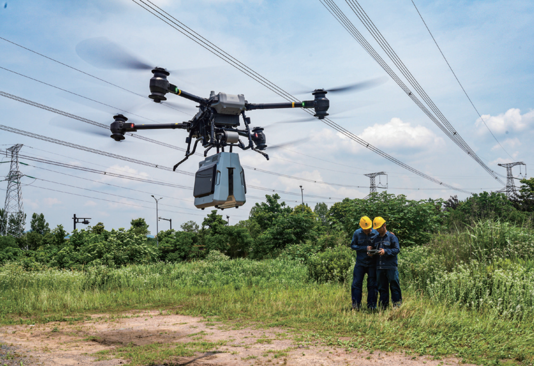 2025年5月22日,在位于浙江省诸暨市的500千伏澄清现场,责任主说念主员操作搭载了地线断股带电修补机器东说念主的大疆无东说念主机升空,对澄清进行开发 图/新华