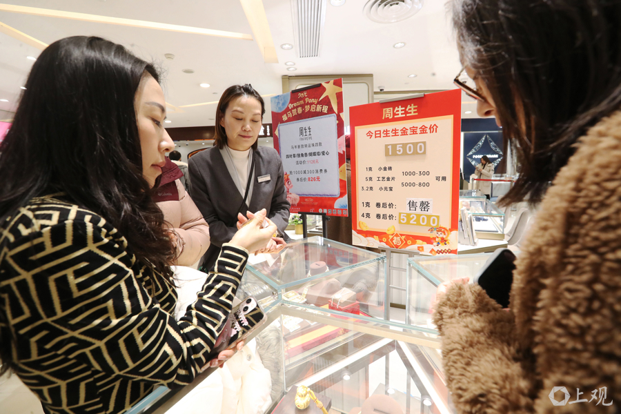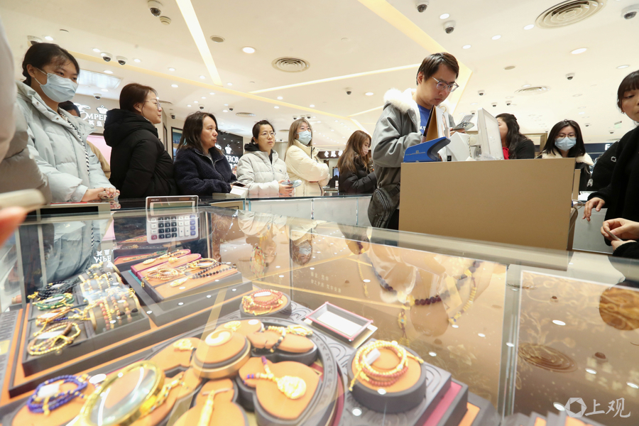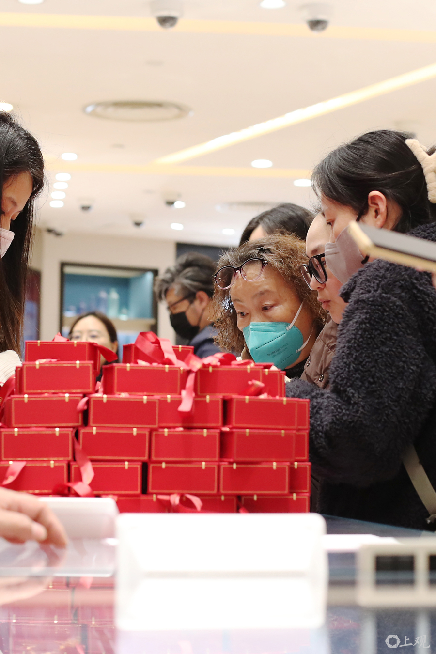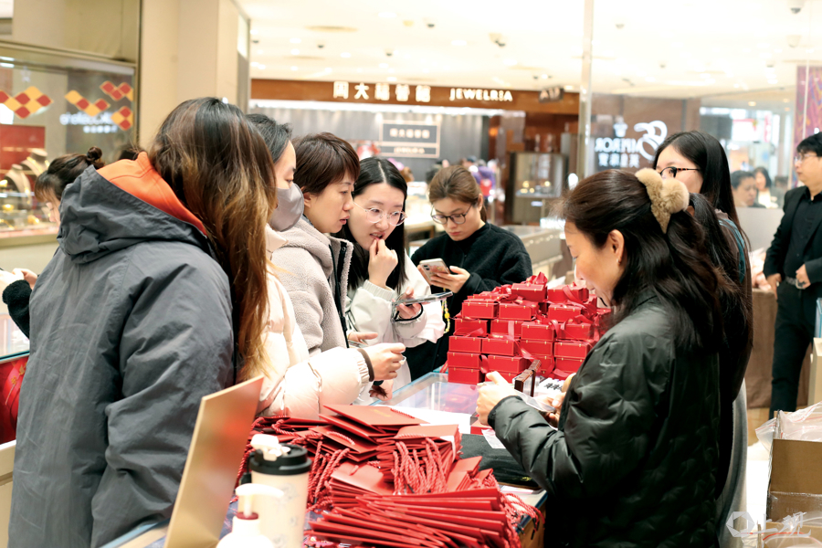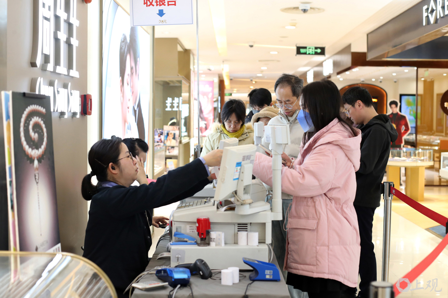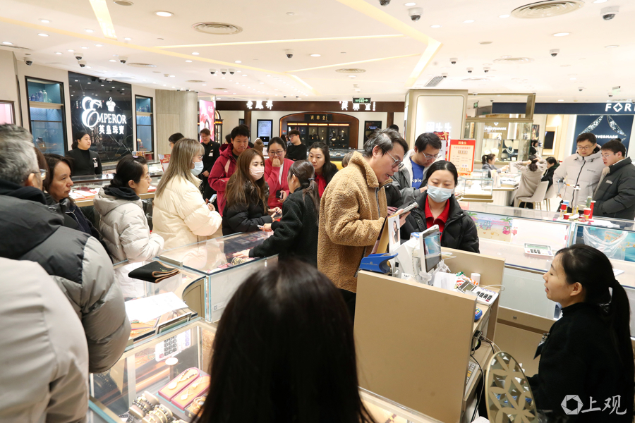 2026年1月29日12点,静安“马上有礼”消费券进入第二次发放,久光百货二楼珠宝黄金区域,除了消费者还有店员一起拼手速。她们说,政府给的福利一定要薅一下。