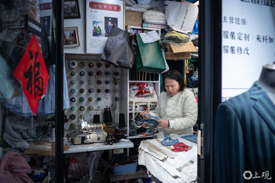 愚园路公共市集里,在愚园路扎根了40年的小赵裁缝铺也挂上了新春的福字。小店经营到2月10号,最近赵师傅正在加班加点赶工:“总不能拖到年后去,过年前给客人都要有个交代的。”赵师傅笑着说。