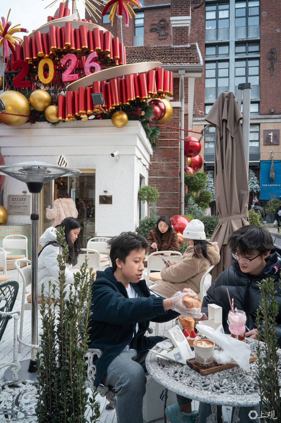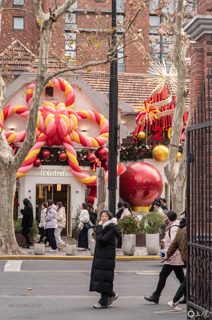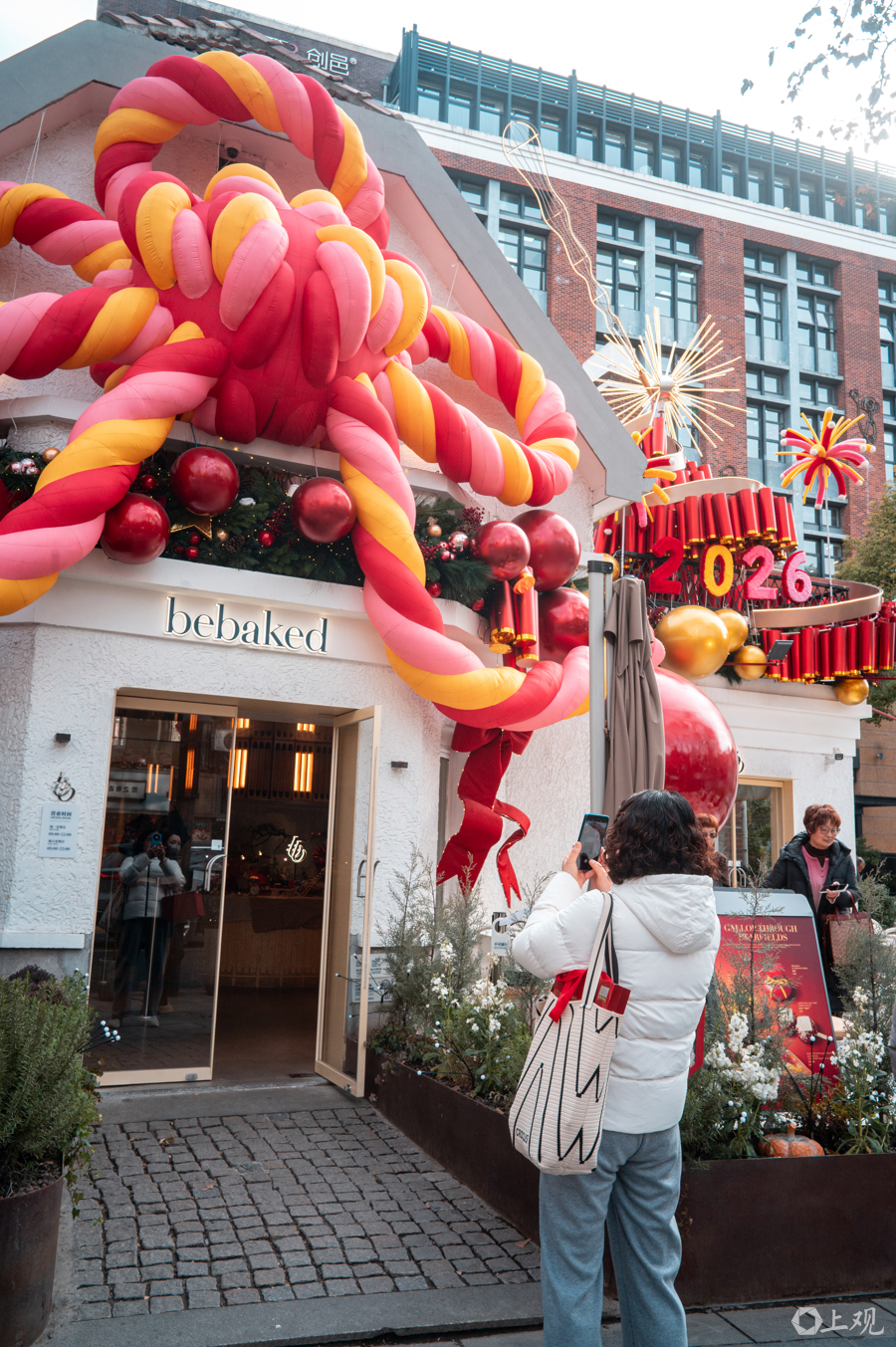 网红咖啡店bebaked早早换上新年的装饰,成为愚园路街头的一道风景线。