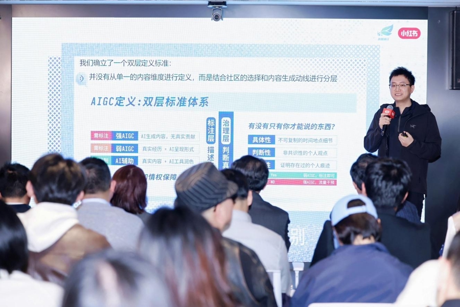 主题共享纪律,小红书AI处置老成东说念主刘星围绕平台对AIGC执行的基本气派和处置想路进行了先容。他暗意,濒临AIGC快速发展,平台处置的要点不是器用自身,而是“用AI替代实在、消解实在”的行动。关于大概接济实在抒发、栽培创作后果的AI讹诈,平台握通达气派;关于枯竭实在训诫撑握、不错被批量复制、收缩用户实在感知和信任基础的执行,平台将握续加强识别、标注和处置。