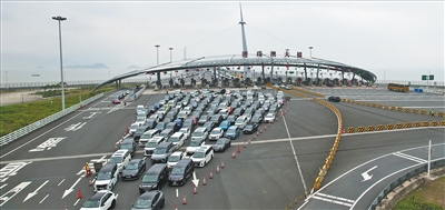 港珠澳大桥上,无数车辆正通过珠海公路港口入境。