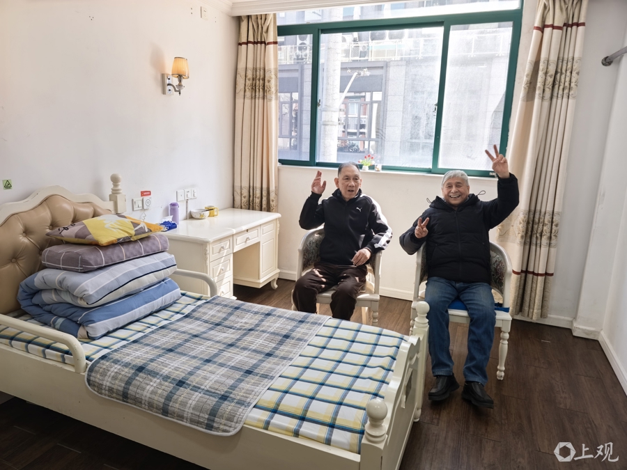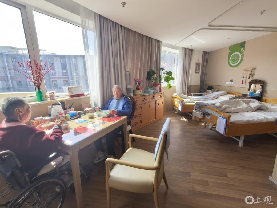 在并吞层楼,85岁的方老伯因老伴已过世,犬子在海外,刻下一个东说念主在上海。他把屋子卖掉后,住进了养老院。与他同住“双东说念主间”的是80岁的盛老伯。记者采访时,恰恰碰到盛老伯的老伴来造访。她告诉记者,盛老伯体魄不太好,我方关注未便,送到养老院请专科护工关注相比恬逸。“老盛安静内敛,老方外向健谈,两个东说念主在一间房搭档,挺好!”