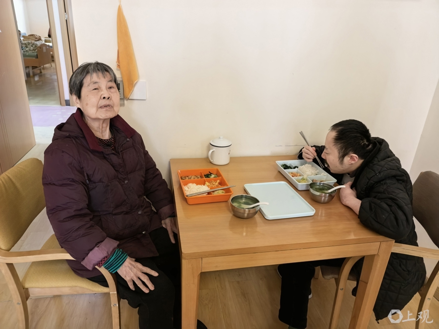 前年,“双东说念主间”纠正完成,辟出几间,特设了“老养残”专区,章阿婆子母成为了第一双入住者。“当今每天能看到犬子,章阿婆显然恬逸多了。有母亲在身边陪着,她的犬子也比往常爱谈话了。”梁燚说。