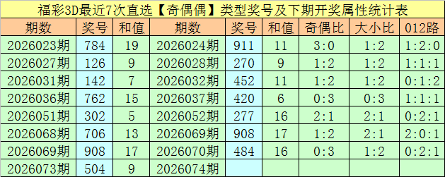 开奖讲究:福彩3D第2026073期开奖号码为504,奖号直选类型为:奇偶偶、大小小和201路。