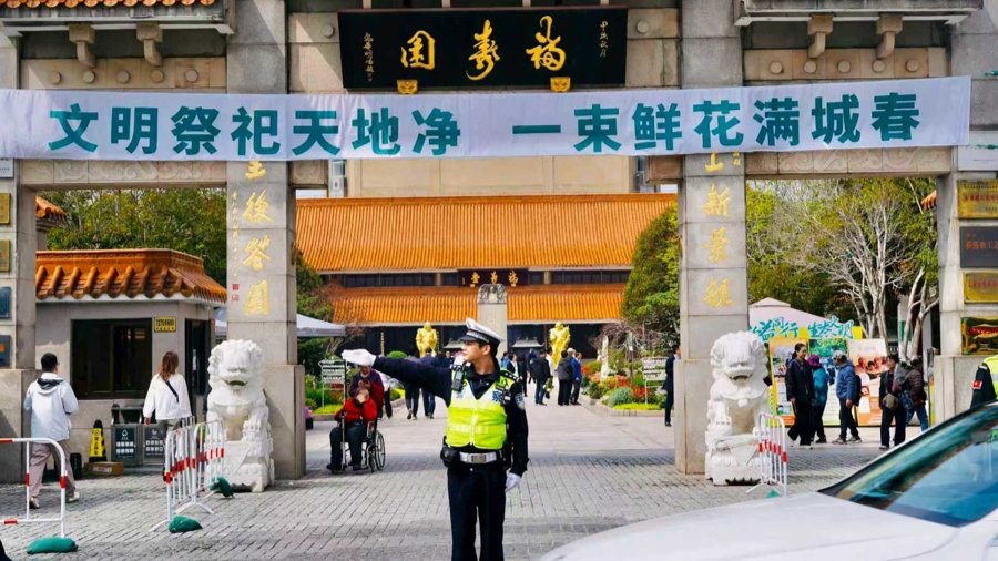 在夏阳福寿园、沈巷至尊园静园等墓园及附进主要路口,一块块“单向通行、前线掉头、不容泊车”的临时路牌被挂起。现场民警凭据实时谈路交通阵势,合理指导分流“过境车”和“省墓车”、“进园车”和“出园车”,利用墓区附进骨干谈有用酿成良性轮回,有用栽种通行后果。