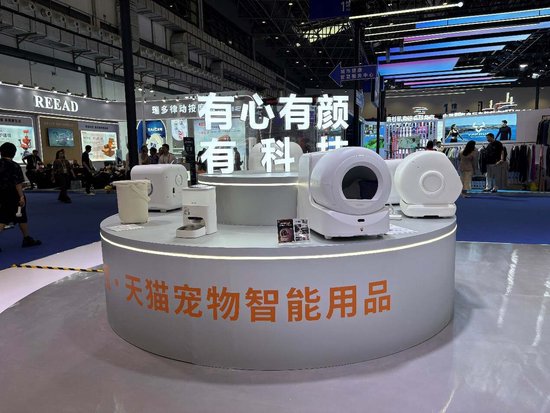 而在另一半的展位区域,淘天集团建立了一个宠物智能用品专区。在淘天平台上,宠物智能用品年景交领域照旧冲破500亿元,而这次展出的PETKIT小佩、homerun霍曼、荒郊野外、空气萝卜等品牌,也代表了自动铲屎、而已喂食、健康监测等改革品类的快速迭代。