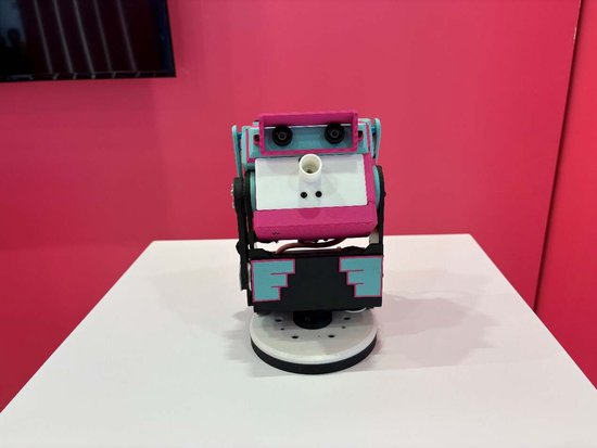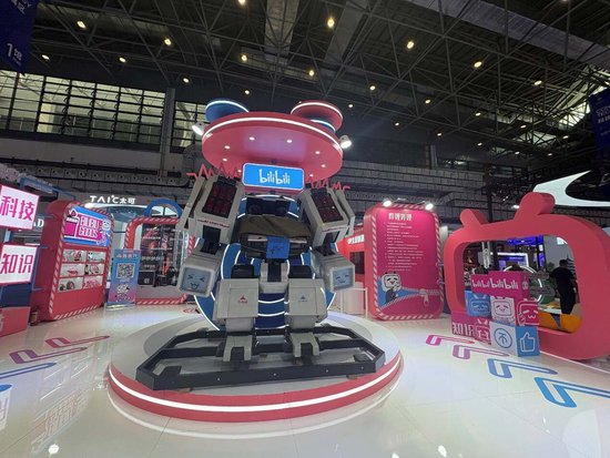进馆没多久,就看到了B站那一抹纯属的粉色,说真话,来之前没念念到会在消博会上看到B站。这是B站初次参展,展位C位上立着一台机甲,是UP主孙世前我方作念的,目测超越2米高,不少参展不雅众皆来拍照打卡。不啻机甲,何同学的几款克己黑科技家具也摆在一旁。