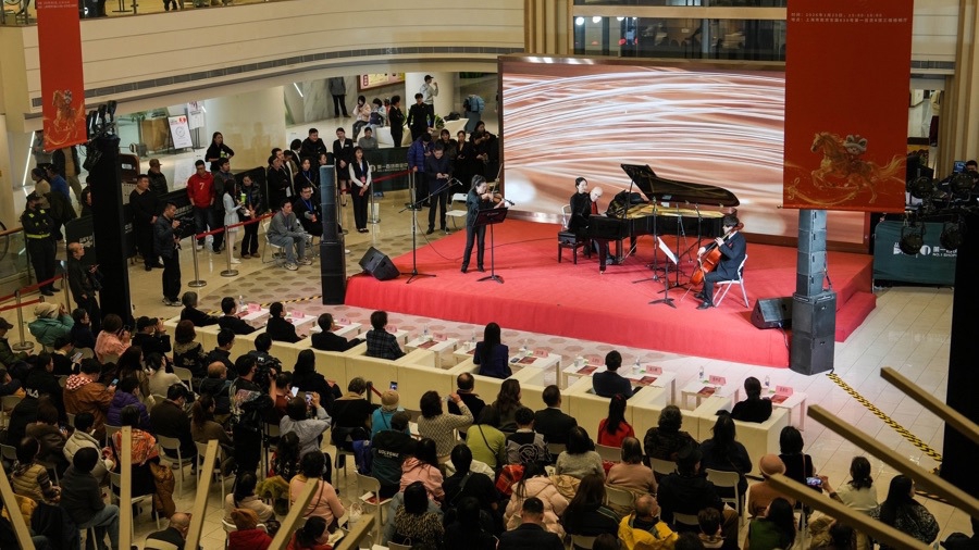 悠扬琴声奏响商业地标,高雅艺术邂逅市井烟火。昨天下午,国际钢琴艺术家孔祥东携手上海爱乐乐团,在百联股份旗下第一百货商业中心献上一场精彩的室内乐音乐会,于黑白琴键上奏响中国年。伴随着灵动旋律,第一百货迎新购物季同步拉开帷幕:六合路上,在升腾的“逐光跃梦”飞马主题装置下,旋转木马的复古风情与朱家角古镇的水乡韵味多元碰撞,酿出浓郁海派年味;步入商场,国潮新品集中首发亮相,吸引中外游客驻足打卡,浓厚的节日购物氛围扑面而来。第一百货正以高品质供给与沉浸式体验赋能消费升级,助力打响“上海消费”品牌。