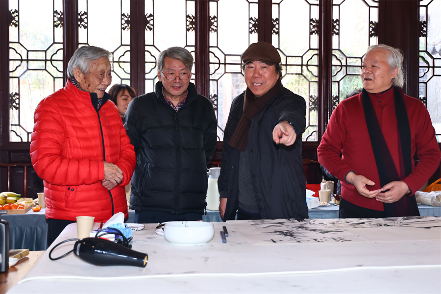 陈家泠(左一)等著名艺术家到场祝贺并创作